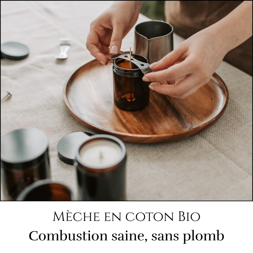 Elles sont composées de cire de soja 100% végétale et d’origine européenne. De plus, nous ajoutons des fragrances de Grasse de haute qualité pour les parfumer. Elles sont éco-responsables, durables et saines pour votre intérieur ! Nos bougies parfumées sont dans un contenant en verre ambré dans un style d’apothicaire qui leur donne une jolie touche vintage. Nos mèches en coton bio assurent une combustion propre, pour une ambiance cosy.