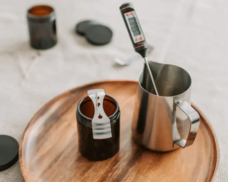 C’est dans mon atelier en Île-de-France que je coule vos bougies avec des ingrédients de haute qualité. Une cire de soja européenne avec plus de 60% de soja français, des mèches en coton bio sans plomb. Et des senteurs de Grasse, capitale du parfum, sans phtalates (perturbateurs endocriniens), ni CMR (cancérigène). Ces superbes pots en verre ambré nous viennent du savoir-faire de nos voisins d’Allemagne.