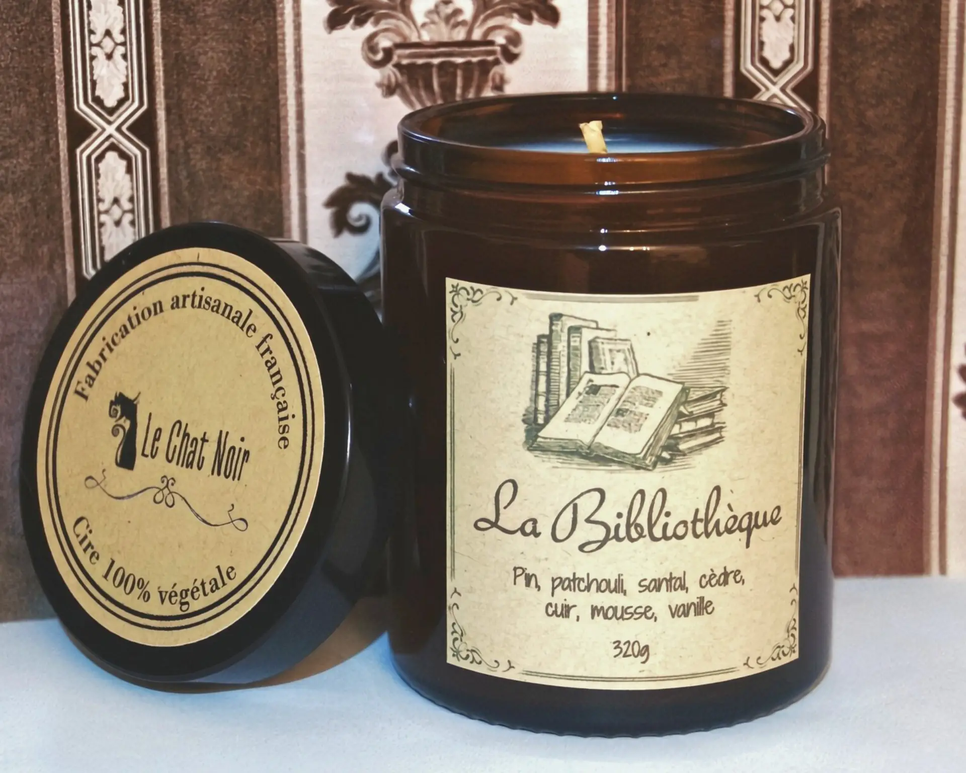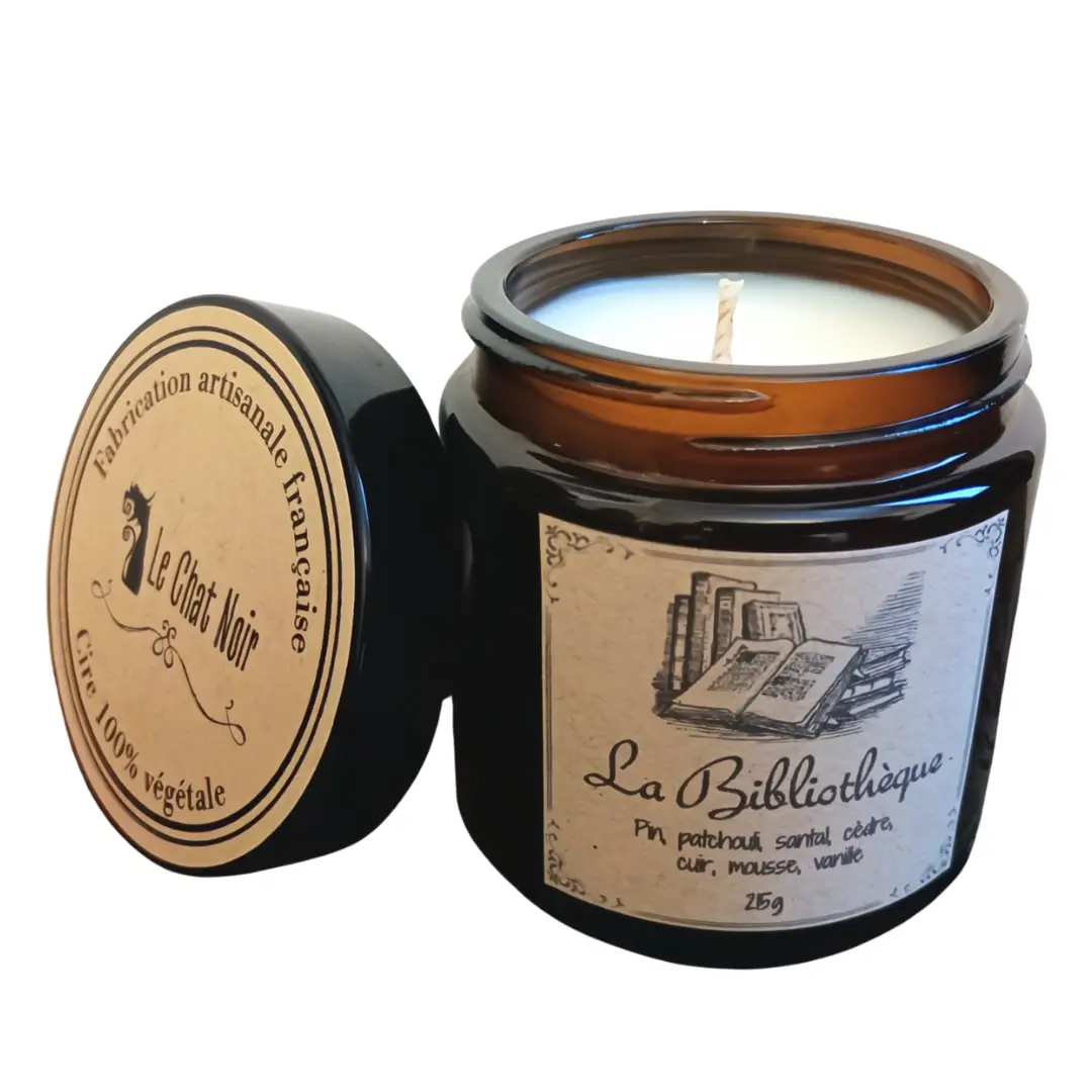 Bougie feu de bois haut de gamme pour les amoureux d’ambiance littéraire, coulée à la main et fabriquée en Île-de-France. Le pot en verre ambré de cette bougie apportera une atmosphère cosy dans n’importe quel coin de lecture avec sa lumière tamisée.