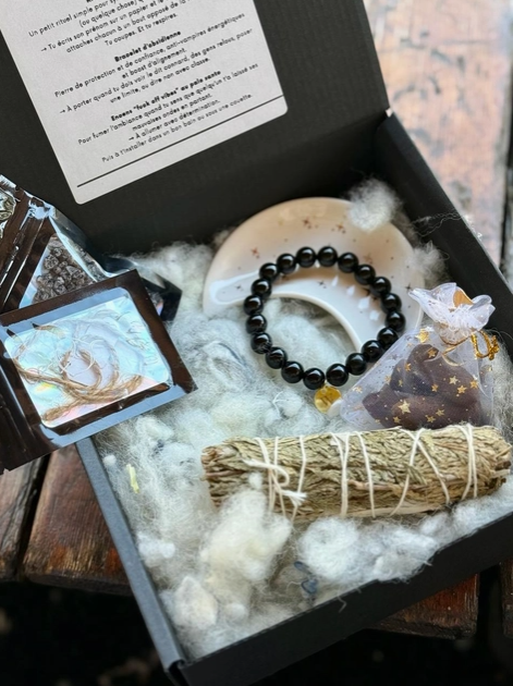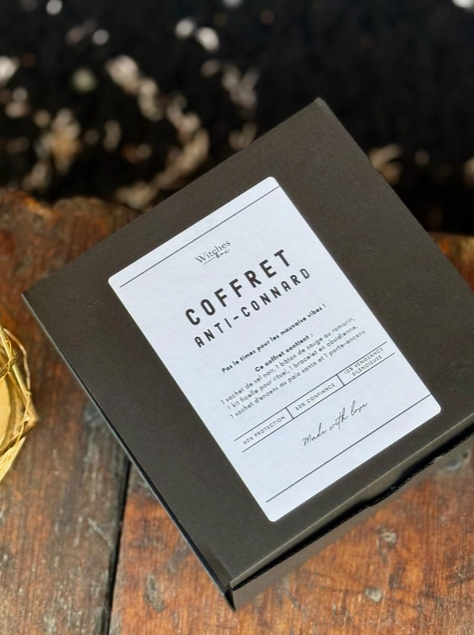 Le tout livré avec amour (et un peu de sarcasme), dans un coffret prêt à t’accompagner dans ton reset énergétique. Ce coffret original a été pensé et assemblé par Witches Box en France, entreprise tenue par une sorcière moderne.